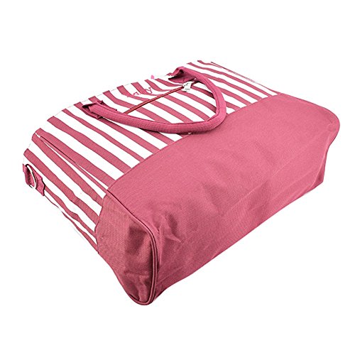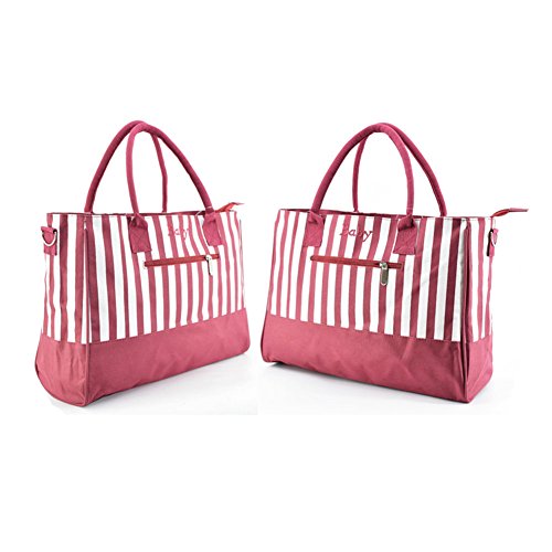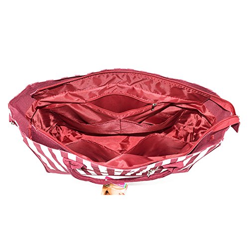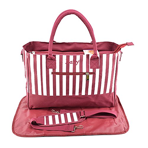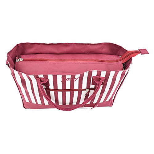 hibote マザーズバッグ 軽量 2way ベビー用品収納 おしゃれなママバッグ 大容量 縞柄 オムツ替え用シート付 多機能 ママのバック レッド