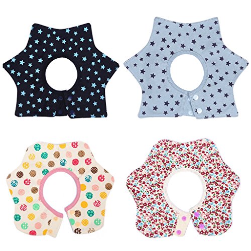 hibote 4枚セット ベビー スタイ コットン 防水 綿 4レイヤー おしゃれ 360度 回転 よだれかけ 0-3歳 TYRE-2
