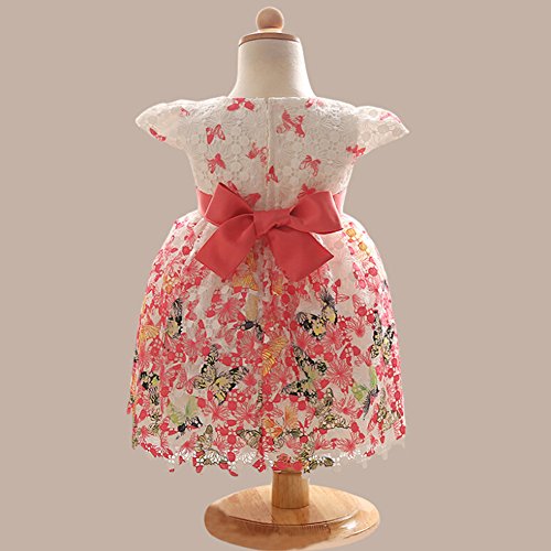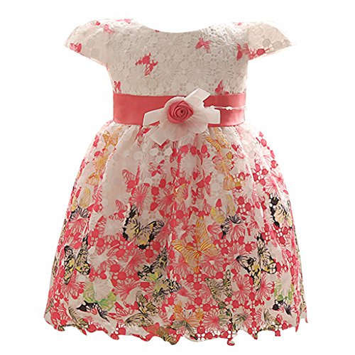 hibote 花柄 レース 可愛い ガール ズプリンセス 誕生日 ウェディング パーティー ダンス 発表会 ドレス ピンク 90cm