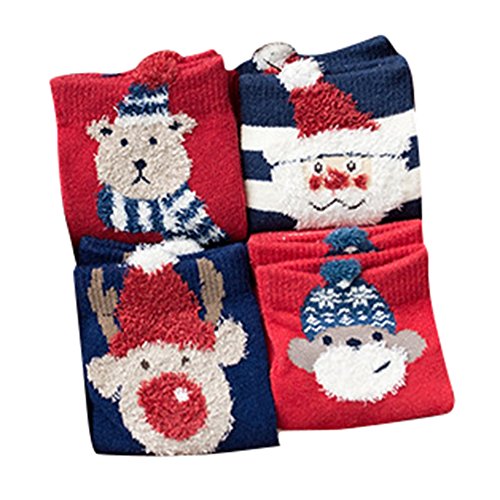 靴下 ソックス 子供 4足セット キッズ 可愛い 綿 カラフル 通気 1-12歳 女の子 男の子 秋 冬 新年 hibote