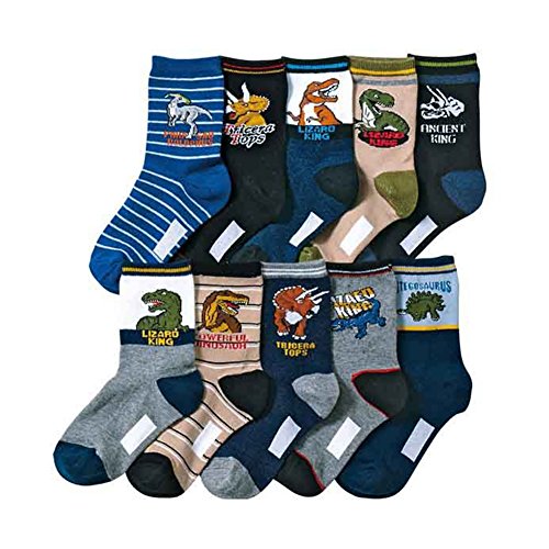 10足セット男の子 靴下 ソックス 恐竜 15cm-19cm 4歳-9歳 ハイソックス 子ども ソックス キッズ hibote No.4