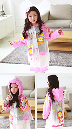 hibote 動物さんのレインコート 男の子 女の子 レインコート カッパ 雨具 140cm-160cm 新学期用 子どもレインコート リュックサックにも対応 収納ポーチ付き ピンク L