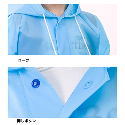 - 急な雨でもサッと着やすい♪ すっぽり被って、左右袖口のスナップボタンをパチっととめるだけ!フードには風で飛ばないよう結び紐付き。