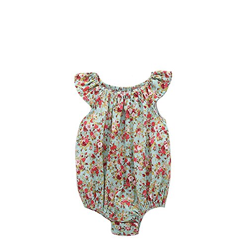hibote ロンパース ボディスーツ 無袖 身長66cm用 ベビー服 オーガニックコットン 花柄 男女兼用 グリーン
