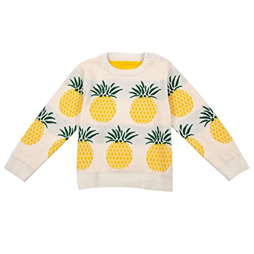 セーター ベビー服 ニット 長袖 パイナップル 秋冬 キッズ服 かわいい 入園式 入学式 hibote イエロー 80cm