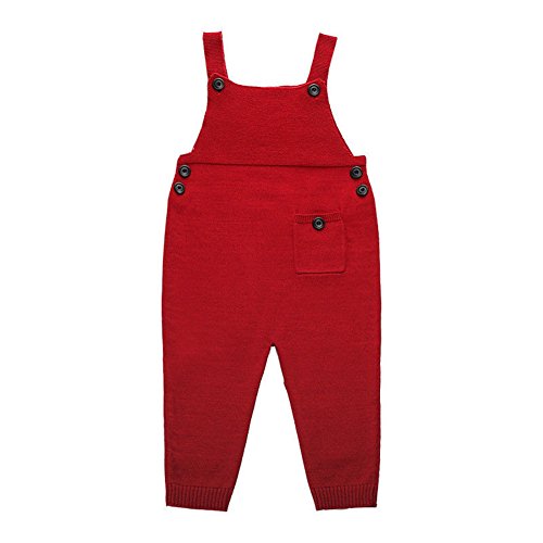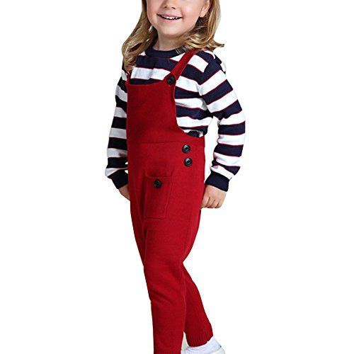 サロペット パンツ キッズ 子供 女の子 ロンパース ロングパンツ オーバーオール プレゼント hibote レッド 90cm