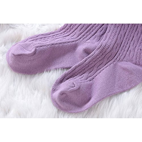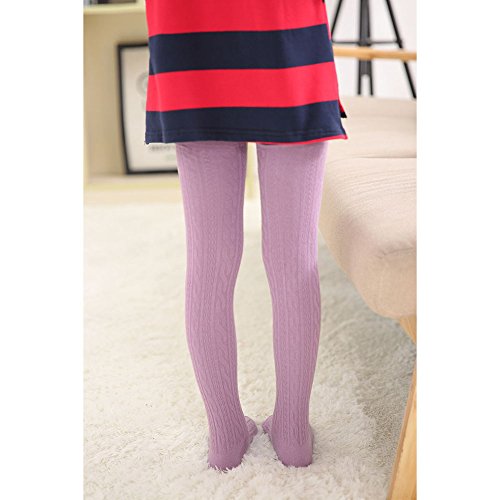 キッズ ニットタイツ 選べる11色 足付き 子供タイツ hibote ライトパープル M/105-120CM