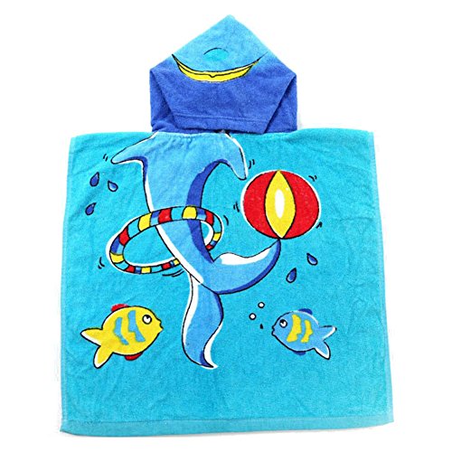 子供用 アニマルフード付き バスタオル ビーチタオル 動物柄 ポンチョ型 湯上りタオル ベビー キッズ 柔らかく 50cm*100cm 男の子 女の子 出産祝い プレゼント ギフト hibote ブルー