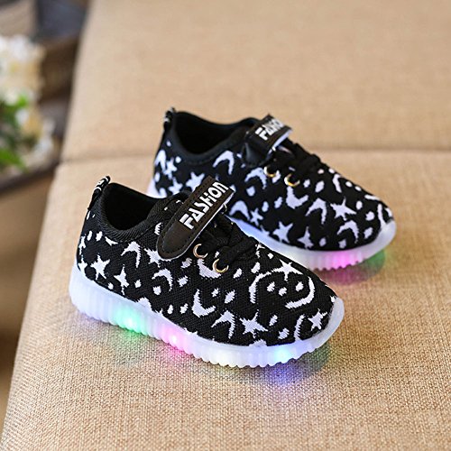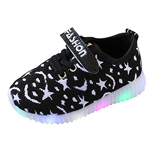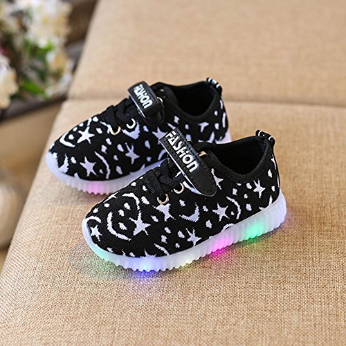 運動靴 キッズ LEDスニーカー 光る靴 男女通用 子供用 発光シューズ 13.5cm-18cm 夜光靴 highdas ブラック 25=内径15.5cm