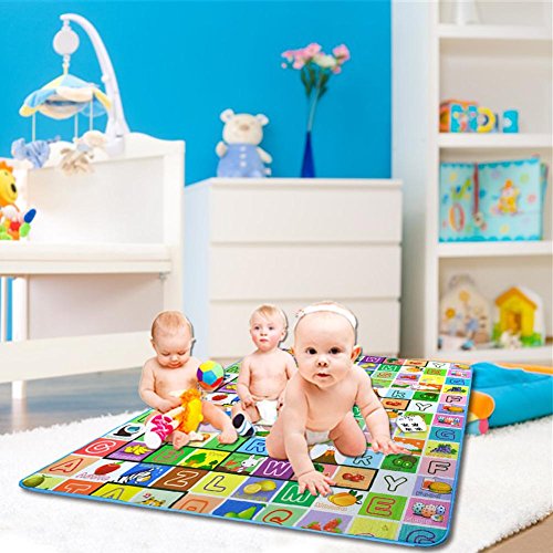 ベビー遊びマット やわらかいマット プレイマット フロアマット 防音マット 柔らかい 両面用 室内/室外用 180 * 120 * 0.5CM (動物園+果物+英語) 子供・赤ん坊・幼児のテントベッド