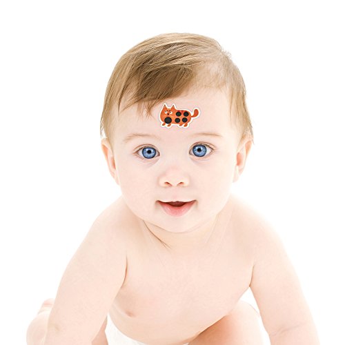 - 【使用方法】体温計を取り外し、子供の額に取り付けます。温度を読み取る前に30秒間待ちます。