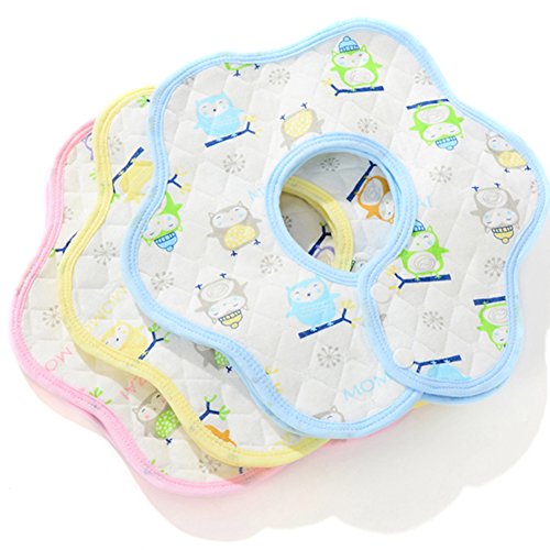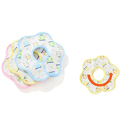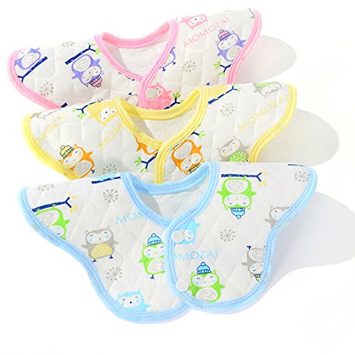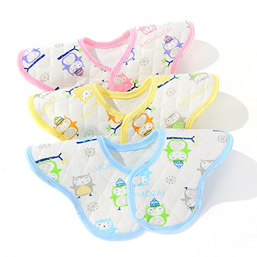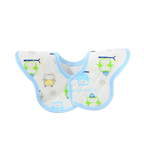 「homecoi」 ベビービブ よだれ掛け 前掛け エプロン 胸当て 食事用スタイ ナプキン ビブ フクロウ柄 食事用 360度 回転 バンダナ 子供 男の子 女の子 新生児 赤ん坊用 ソフト (ブルー)