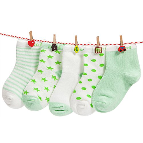 「homecoi」ソックス キッズ 靴下 子供靴下 ベビーソックス ストッキング 男の子 女の子 子供 ガールズ ボーイズ ベビー キッズ ショート スニーカー スポーツ 運動 タイツ 通気性 春夏 5足セット 色サイズ選択 (M, グリーン)