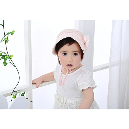 「homecoi」 ベビー帽子 ハット サンバイザー ヘアバンド レッテル レース 子供用 男の子 女の子 新生児 キッズ 赤ん坊 赤ちゃん用 アウトドア おしゃれ 可愛い 花付き 遮光 (ピンク)