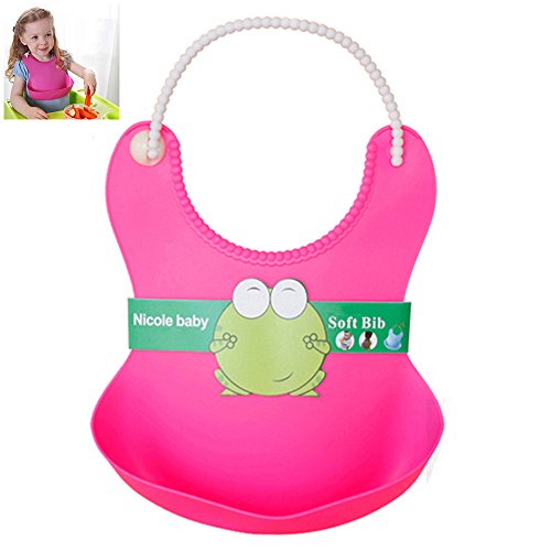 hotbest食事エプロン ベビー よだれかけ シリコンスタイ ポケット付き 柔らかい 防水 食事用 (ローズレット)