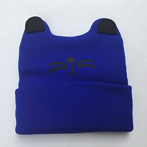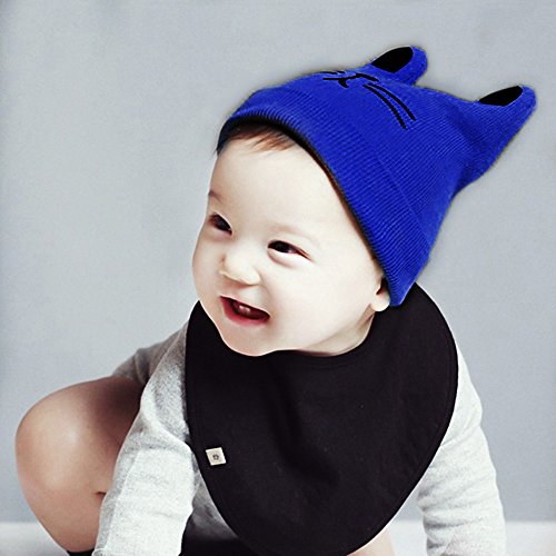 hotbest ベビー ニット帽 新生児帽子 ベビー用帽 猫耳 冬 女の子 男の子 ニット帽 出産お祝い プレゼント 暖かい かわいい 防風・防寒・保温 春 秋 冬 (ブルー)