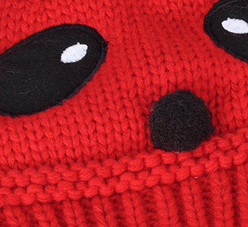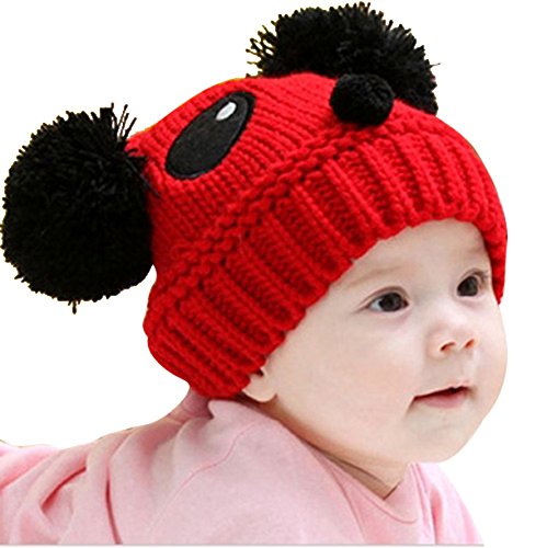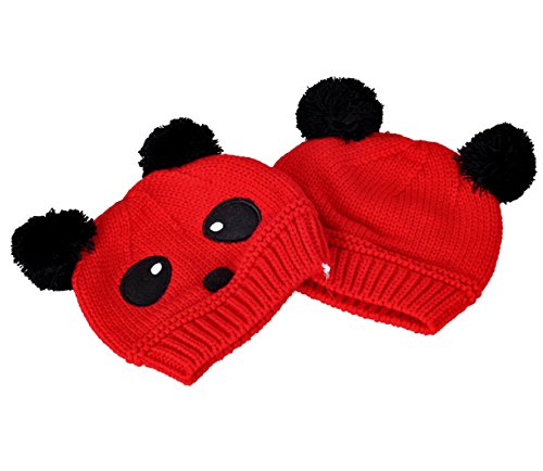 Housweety手作リ パンダデザイン!ボンボン付き ベビー ニットキャップ ニット帽 防寒帽 女の子 男の子 赤ちゃん キッズ ニット 冬帽子 子供服(新生児~5ヶ月)レッド