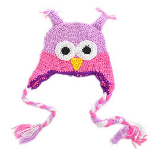 Housweety多色カラー ふくろう デザイン! ベビー 耳付き ニットキャップ ニット帽 防寒帽 女の子 男の子 赤ちゃん キッズ ニット 冬帽子 子供服 (3ヶ月~4歳)パープル