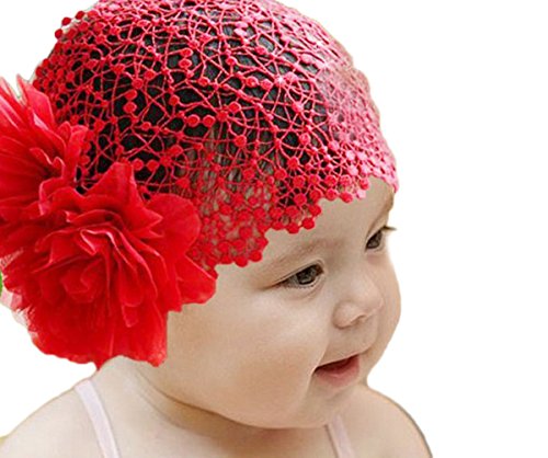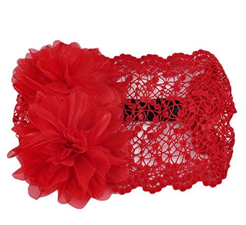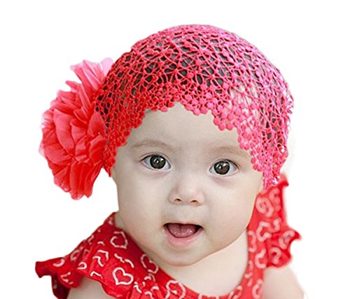 Housweetyレッドベビー キッズ 赤ちゃん カチューシャ ヘアアクセサリー ヘアバンド ヘッドバンド レースフラワー 花 髪飾り 子供服 出産祝い 結婚式 プレゼント ギフト 伸縮性がある かわいい ホットピンク