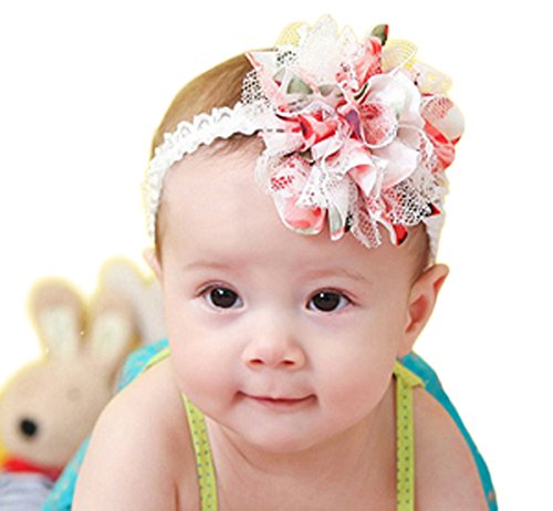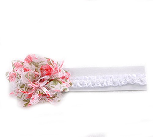Housweetyホワイトベビー キッズ 赤ちゃん カチューシャ ヘアアクセサリー ヘアバンド ヘッドバンド レッド花柄レース花 髪飾り 子供服 出産祝い 結婚式 プレゼント ギフト 伸縮性がある かわいい ホットピンク