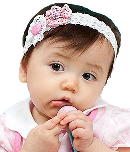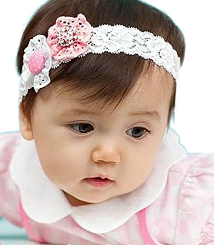 Housweetyホワイトベビー キッズ 赤ちゃん カチューシャ ヘアアクセサリー ヘアバンド ヘッドバンド レース ボタン 髪飾り 子供服 出産祝い 結婚式 プレゼント ギフト 伸縮性がある かわいい ホットピンク