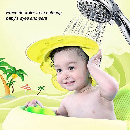 このシャワーキャップは、シャンプーや入浴中に水が赤ちゃんの目に入るのを防ぎます。