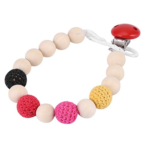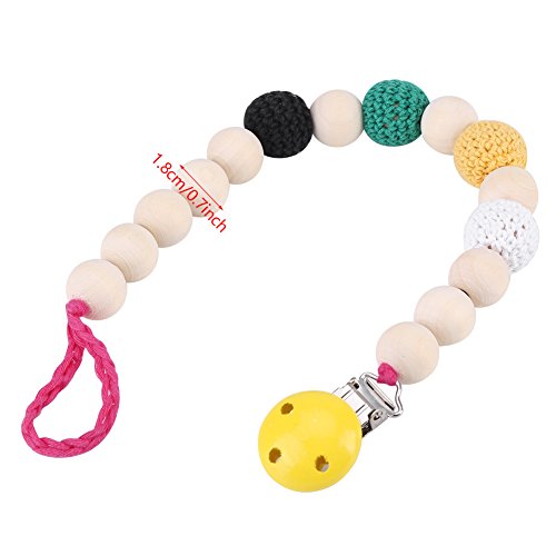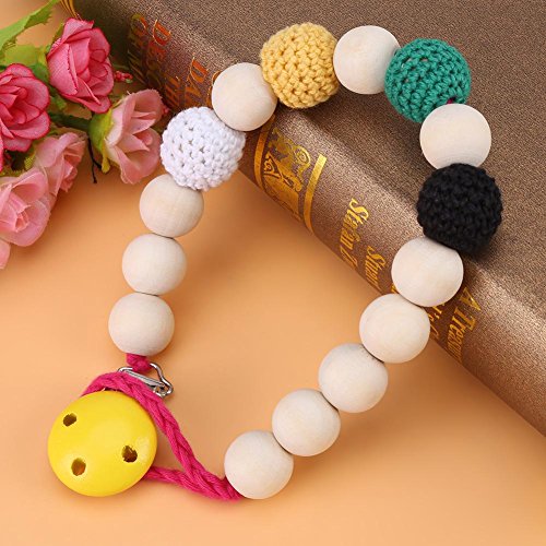 このおしゃぶりホルダーは、おしゃぶりのニップルを清潔に保ち、失われないようにします。チェーンは木製のビーズでできており、毒性がなく安全です。あなたの小さい赤ん坊はシャワーと摂食を取るときにこの甘いおもちゃを愛するでしょう