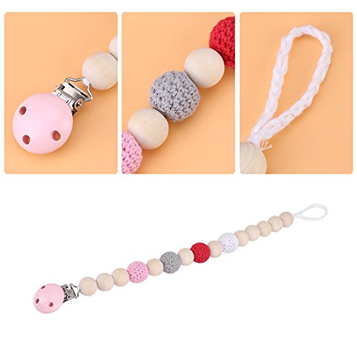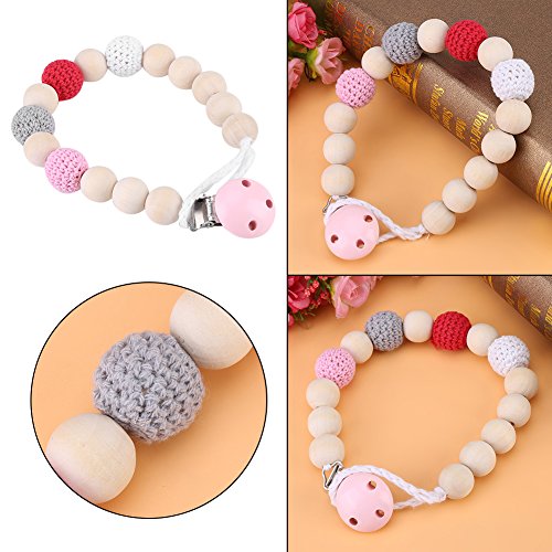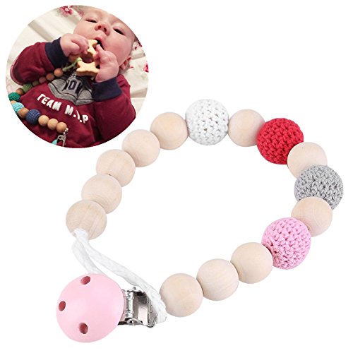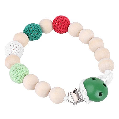 このおしゃぶりホルダーは、おしゃぶりのニップルを清潔に保ち、失われないようにします。チェーンは木製のビーズでできており、毒性がなく安全です。あなたの小さい赤ん坊はシャワーと摂食を取るときにこの甘いおもちゃを愛するでしょう