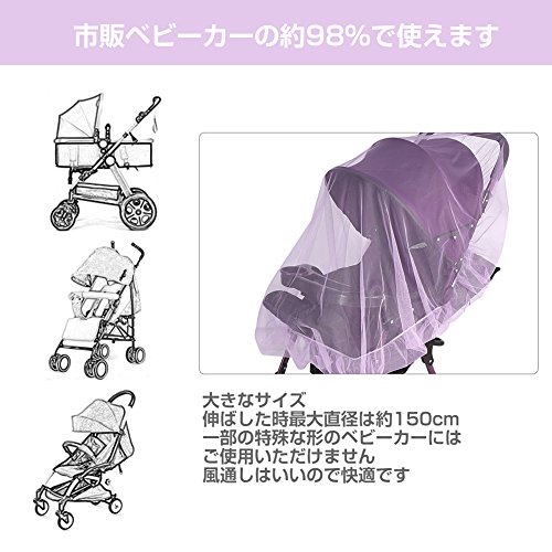 ベビーカー蚊帳 ベビーカー虫除け 赤ちゃんを守る 害虫侵入を防ぐ かや ネット (パープル)