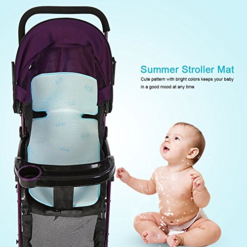 ベビーカーマット ベビーカークッション アイスシルク素材 ベビーカーシート 通気 ベビー 幼児 ベビーカーシート夏 涼しい 快適 抗菌 接触冷感 夏 折り畳み 3D設計 天然素材 (ライトブルー)