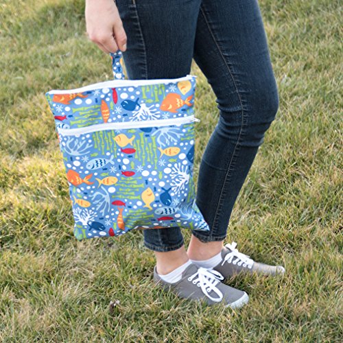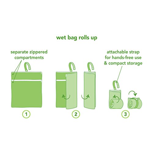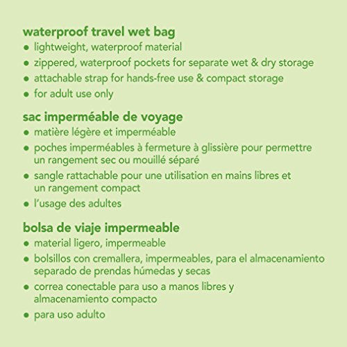 Stores swim wear, diapers, training underwear, clothes, toys, snacks, and more;Lightweight, waterproof material;Zippered, waterproof pocket for separate wet & dry storage;Attachable strap for hands-free use & rolled, compact storage