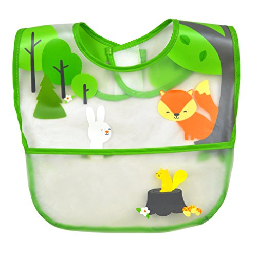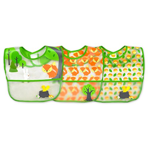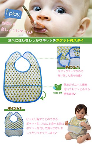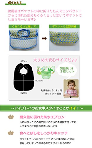 iplay アイプレイ お食事エプロン 3枚セット 防水 スタイ ビブ 食べこぼしポケット付 (グリーンフォックス)