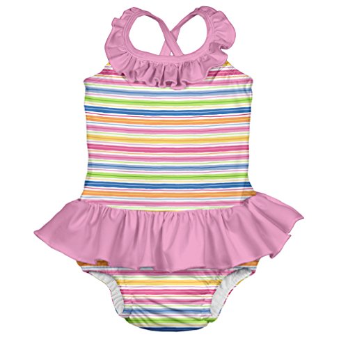 アイプレイ I play 水着 ワンピース ラッシュガード オムツ機能付 水遊びパンツ 女の子 XL:24ヶ月/11.5-13.5kg Pink Wavy Stripe