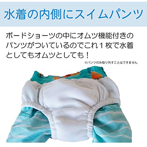 - 洗って繰り返し使用できるプール用おむつが内側に組み込まれたボードショーツ
