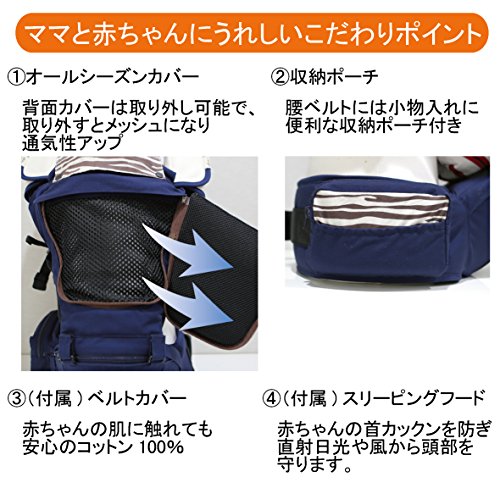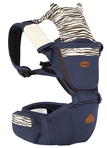 i-angel アイエンジェル ヒップシートキャリア 抱っこ紐 アニマルダークブルー 落下防止安全ベルト付(ベルトカバー・前向き抱っこ用カバー付属) 【SG認証/メーカー保証・日本語説明書付】