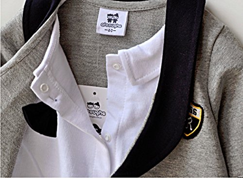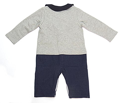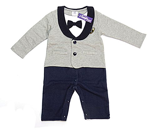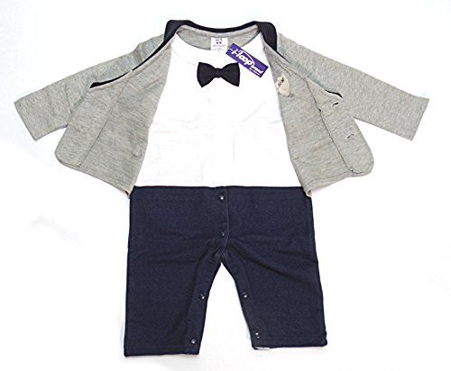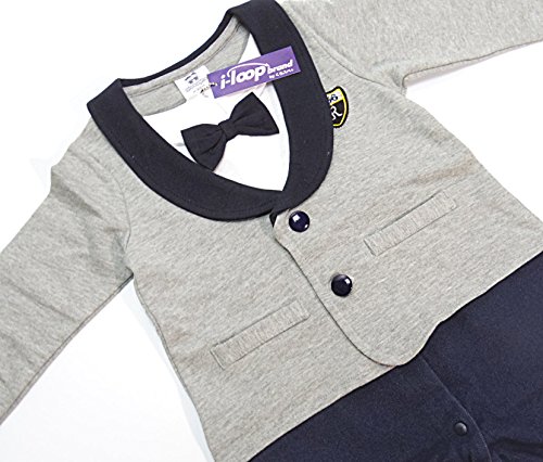 (i-loop) ベビー服 スーツ風 ロンパース 赤ちゃん カバーオール 新生児 長袖 春秋着 子供服 蝶ネクタイ キッズ フォーマル 男の子 出産祝い 写真撮影 ( グレーブレザー+ネイビーロンパース 80 G )