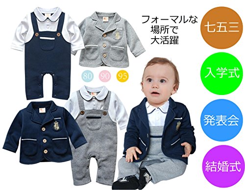 i-loop ベビー 用 ブレザー 付き オーバーオール 風 ロンパース 子ども服 男の子 ( ネイビーブレザー + グレーロンパース 95cm)