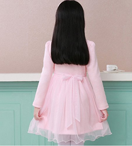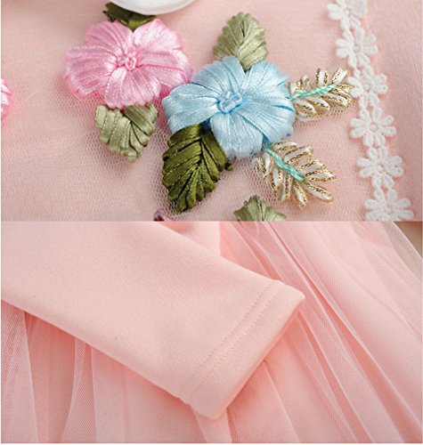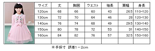 i-loop 子ども服 ワンピース 子どもドレス 長袖 リボンカチューシャ付き フォーマル 秋 冬 春 発表会 結婚式 入園式 演奏会 女の子 フラワードレス (120cm, フラワー刺繍・ピンク)
