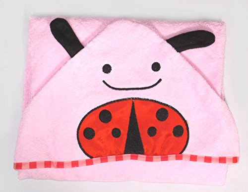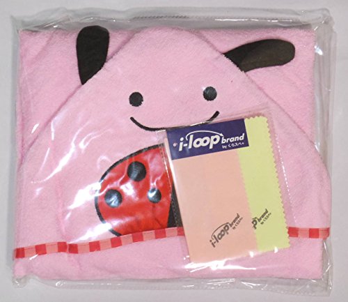 i-loop ベビー かわいい アニマル バスローブ おくるみ ポンチョ 動物 顔 フード マント バイル タオル地 出産祝い プレゼントに てんとう虫 (ピンク)