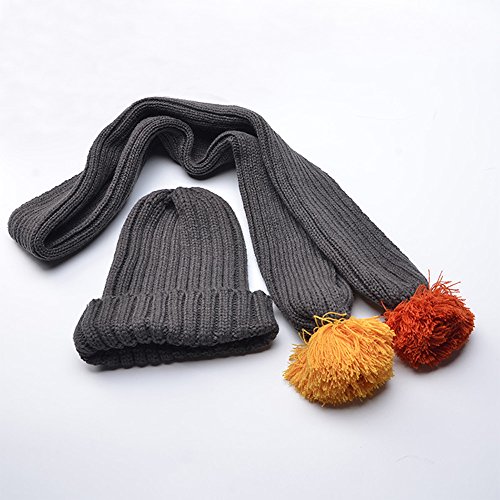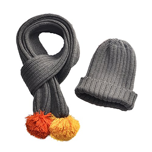 ICASSO子供用 ニット帽子とマフラーセット ベビー キッズ 男の子 女の子 両者兼用おしゃれ かわいいキャップ帽子 秋冬 防寒 選べる7色 (ダークグレー)