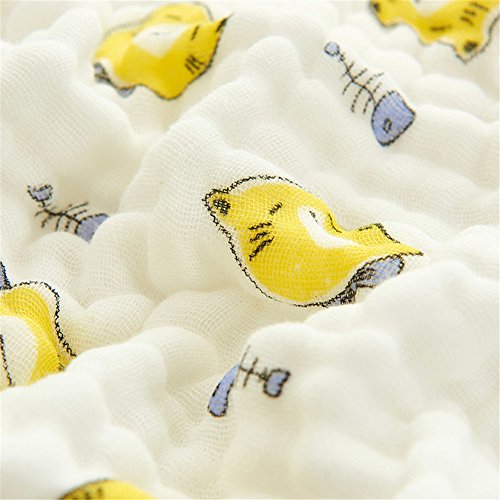6重ガーゼケット タオルケット 綿100 シングルサイズ ふわふわ ベビー ブランケット キャラクターデザイン 高級感 かわいい動物柄105x110㎝(魚はネゴに食べる)