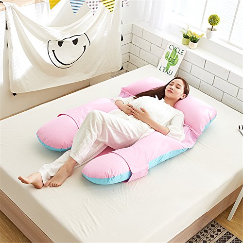 iDouillet U型妊婦枕 巨大な抱きまくら ツインテール挟まれ まくら(ブルー + ピンク)80x140cm