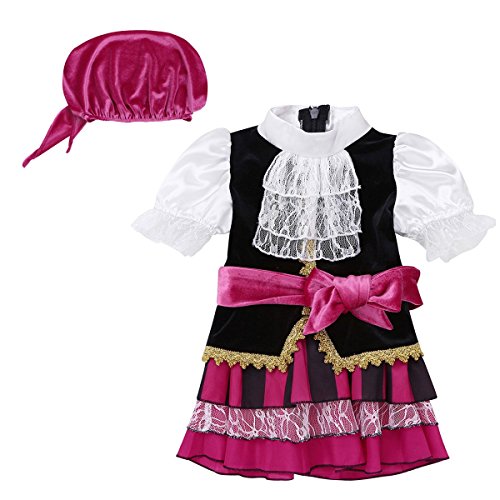 (イーエフイー)EFE ハロウィン衣装 海賊風仮装 2点セット 子供用コスチューム ワンピース+ヘッドスカーフ ベビー服 着ぐるみ 女の子 写真撮影 パーティーグッズ ブラック&レッド 65