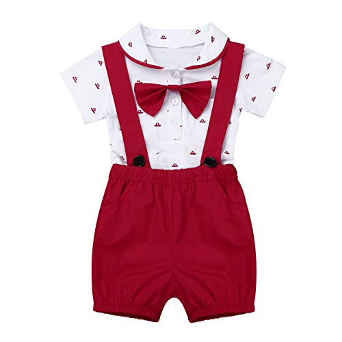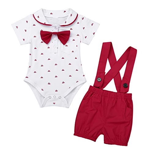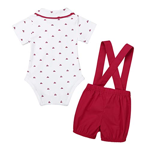 (イーエフイー)EFE 子供ロンパース ベビーフォーマル 2点セット 半袖 セレモニーロンパース 男の子 ベビー服 ボウタイ 70 80 90 100 レッド 70