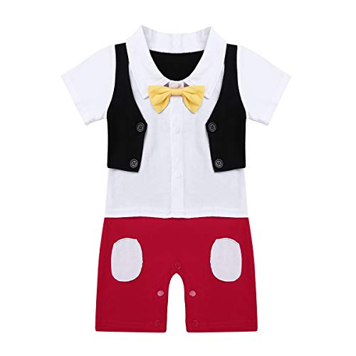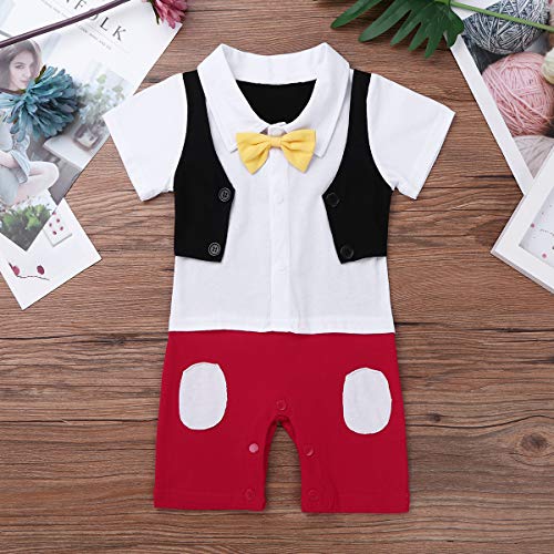 (イーエフイー)EFE ベビーフォーマル半袖 夏用ロンパース 結婚式服 男の子 ミッキーマウス ベビー 赤ちゃん ハロウィン 衣装 コスチューム ボディースーツ ホワイト&レッド 100