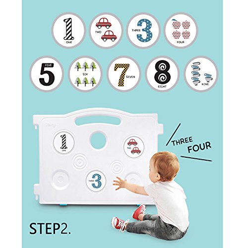 - 教育効果を与えることができる学習ステッカー;Step1(0〜3ヶ月):黒と白の焦点デザインでの視覚的な開発。 Step2(3ヶ月〜):脳に色番号と画像で刺激を与えます。