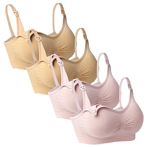 iLoveSIA (アイラブシア) マタニティ ブラジャー 2Wayオープン ノンワイヤー 4枚セット ピンク+ピンク+ベージュ+ベージュ LL