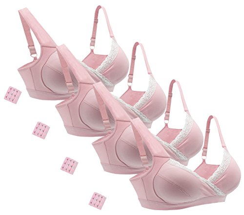 iLoveSIA (アイラブシア) マタニティ ブラジャー クロスオープン ノンワイヤー ブラカップ付 4枚セット ピンク M「L実物サイズタグ」