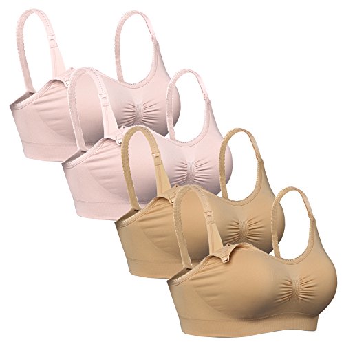 iLoveSIA (アイラブシア) マタニティ ブラジャー 前開き 授乳 ノンワイヤーブラ レース付 4枚セット ピンク+ピンク+ベージュ+ベージュ LL