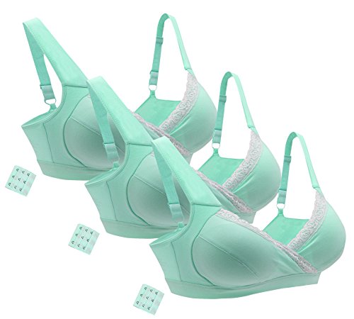 iLoveSIA (アイラブシア) マタニティ ブラジャー クロスオープン ノンワイヤー ブラカップ付 3枚セット 緑 S(M実物サイズタグ)